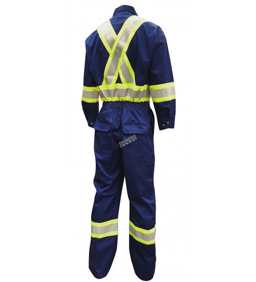 It is a loose-fitting pair of pants with supporting cross-straps, or a full or half sleeve shirt that is worn over regular shirts, vests, and trousers to protect them from heat, cold, splashes, sparks, flames and flying debris, etc. in the workplace.